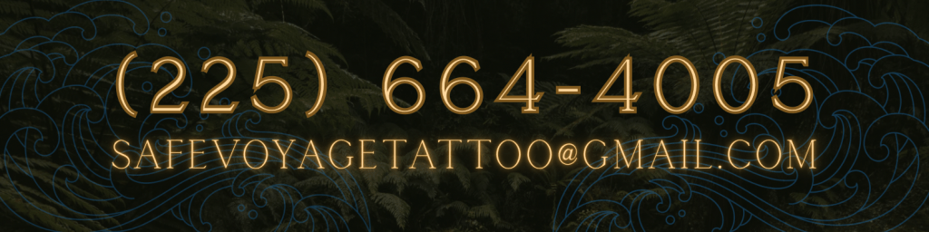 Welcome to Safe Voyage Tattoo, where the timeless tradition of tattooing meets modern innovation. Established in 2012 in Denham Springs, we’ve built our reputation by honoring the artistry of the past while pushing the boundaries of creativity in today’s world. Our team of skilled artists and piercers blends age-old techniques with fresh, new ideas to deliver custom work that speaks to your unique vision.