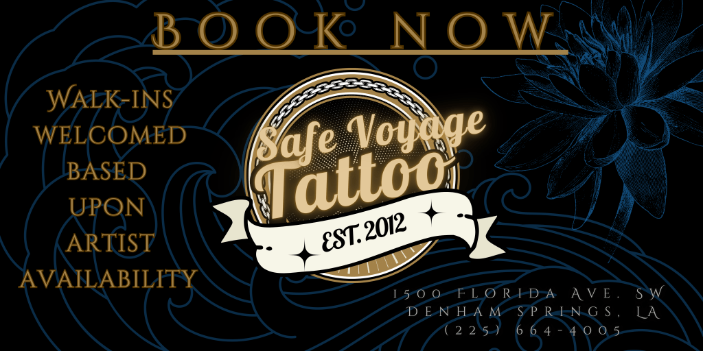 At Safe Voyage Tattoo, we keep tradition alive with a twist of fun through our “Get What You Get” experience—a tribute to the legends who laid the foundation for American tattooing. This throwback to old-school flash culture brings the spirit of spontaneity and trust back into the hands of both artist and collector.